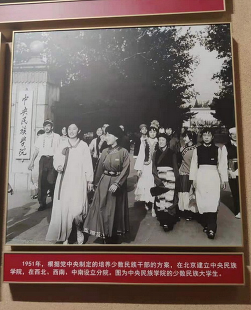 新闻网讯 近日,“‘不忘初心、牢记使命’中国共产党历史展览”在新近落成的中国共产党历史展览馆内举办。展厅展出2600余幅图片、3500多件套文物实物,全景式展现了中国共产党带领中国人民铸就百年辉煌的壮阔历程。“1951年,根据党中央制定的培养少数民族干部的方案,在北京建立中央民族学院,在西北、西南、中南设立分院。图为中央民族学院的少数民族大学生。”图片入选展览并被展出。