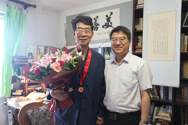 来到牟钟鉴先生家中,张京泽代表学校党委向先生表示亲切问候,高度评价和感谢他几十年来的辛勤耕耘及为党和学校事业作出的突出贡献,悉心询问先生身体状况、生活起居,并希望他在保重身体的同时,继续发挥老党员作用,为推动学校发展和培养青年教师成长贡献智慧和力量。张京泽表示,老党员们在立德树人和科学研究等方面都为年轻教师和干部树立了标杆,学校将继续用心用情做好各项服务保障工作。
