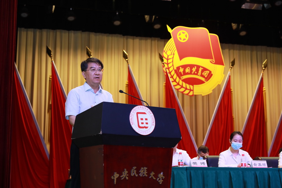 张京泽在讲话中谈到,学校共青团始终秉持和发扬“党有号召、团有行动”的光荣传统,围绕中心,服务大局,在保障党和国家重大政治任务中勇挑重担、甘于奉献,在抗击新冠肺炎疫情阻击战中不畏艰险、敢于上前,在服务学校立德树人根本任务和铸牢中华民族共同体意识工作主线中开创新局、奋发有为,在引领青年思想、服务青年成长中守正创新、硕果累累。实践证明,学校共青团组织不愧为党的得力助手和可靠后备军,广大团学干部确实是一支肯吃苦、能战斗、敢担当、讲奉献、有作为的队伍,各族团员青年始终是青年学生中团结奋进、实践成才的模范与表率。