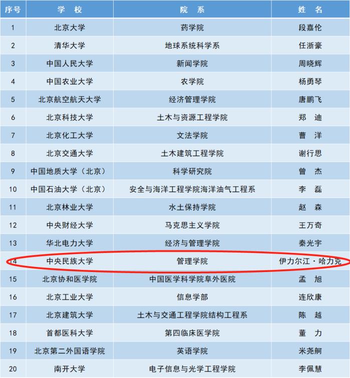 本次创建评选活动是新时代高校党建“双创”工作的重要组成部分,是新时代研究生党建工作的重要推动力量。学校在接到通知后,由党委学生工作部牵头,在各学院党组织的大力支持下,我校推选了管理学院党员伊力尔江•哈力克。历经北京市教工委评审、教育部评审后,最终收获佳绩。