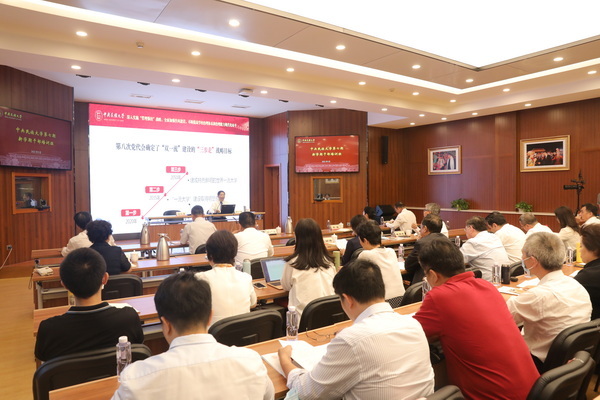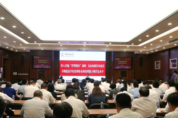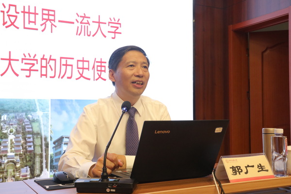 新闻网讯 9月1日下午,党委副书记、校长郭广生以“深入实施‘管理强校’战略 全面加强作风建设 不断提高学校治理体系和治理能力现代化水平”为题,为学校第七期新学期干部培训班作专题报告。报告会由党委常务副书记 、纪委书记马文喜主持。