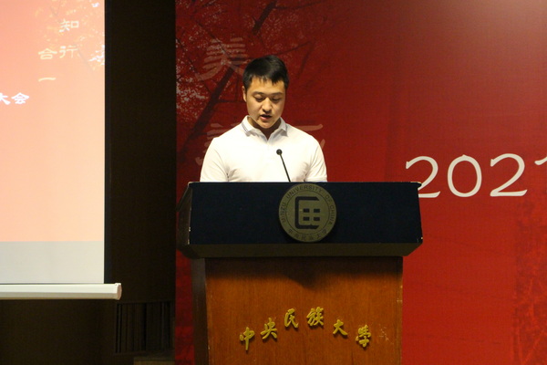 新生代表、民族学与社会学学院2021级硕博连读研究生刘继文表达了自己选择硕博连读、留校深造的初衷,源自于学校民族学、社会学强大的学科实力与浓厚的学术氛围,他号召大家要崇尚学术、追求真知,要扎根田野、躬行实践,要磨练心性、修炼品格。
