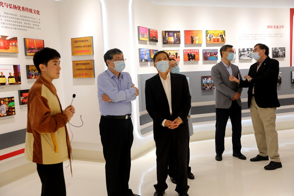 座谈会前,屠志涛一行前往学校民族博物馆、药学院大型仪器实验室进行参观。