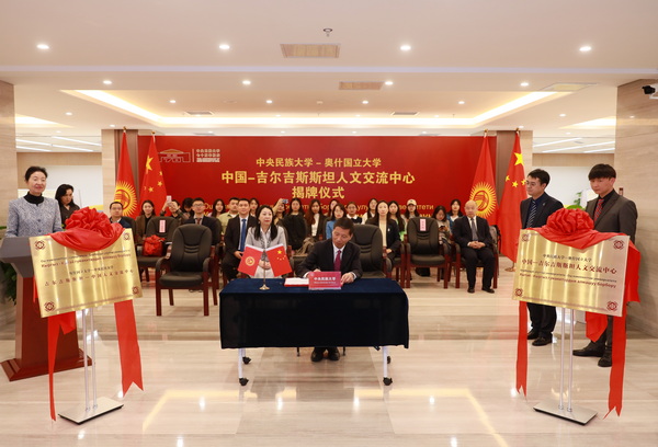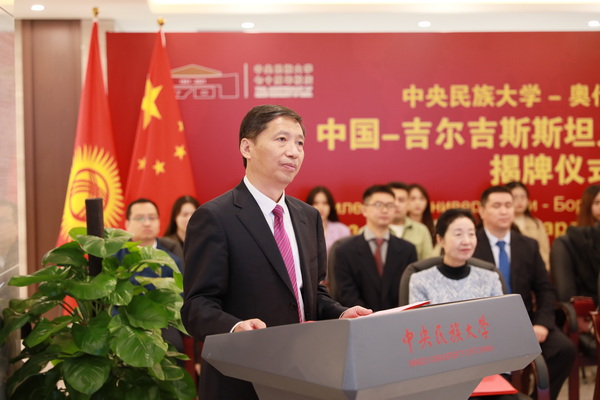 郭广生在致辞中表示,在中国共产党百年华诞之际,ag视讯迎来了70岁生日。ag视讯与奥什国立大学举办的“中国—吉尔吉斯斯坦人文交流中心”揭牌仪式,是学校庆祝建校70周年的重要活动之一。经过70年的发展,ag视讯作为唯一入选国家“211工程”“985工程”“双一流”建设大学的民族高校,已经建设成为国内具有标杆性的高水平大学。全校各民族师生与来自40多个国家的师生共同学习、生活,相互欣赏、学习、交流,形成了一个和谐相处的共同体。人文交流中心的建设,不仅有助于两校的合作交流、共同发展,还承载着中吉两国人民友好交流、民心相通的美好愿望。学校将全力支持人文交流中心建设,铺设中吉互学互鉴、民间相互了解的桥梁,为两国人文领域合作交流、为两国睦邻友好合作、为“一带一路”高质量发展、为推动构建人类命运共同体继续做出自己应有的贡献。