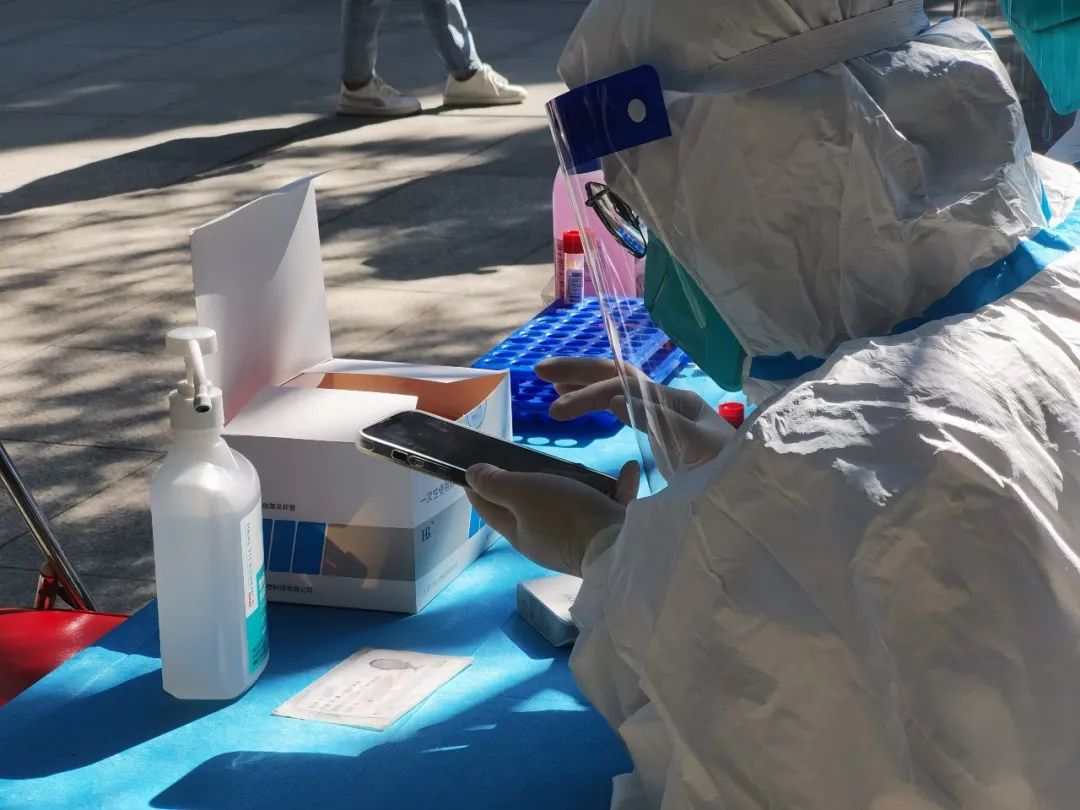 疫情就是命令,防控就是责任。学校教职工党员志愿服务队闻令而动,学生志愿者紧随其后,接过青年教师志愿者“大白”的接力棒,换上防护服,负责信息录入工作,为大家守护绿码。