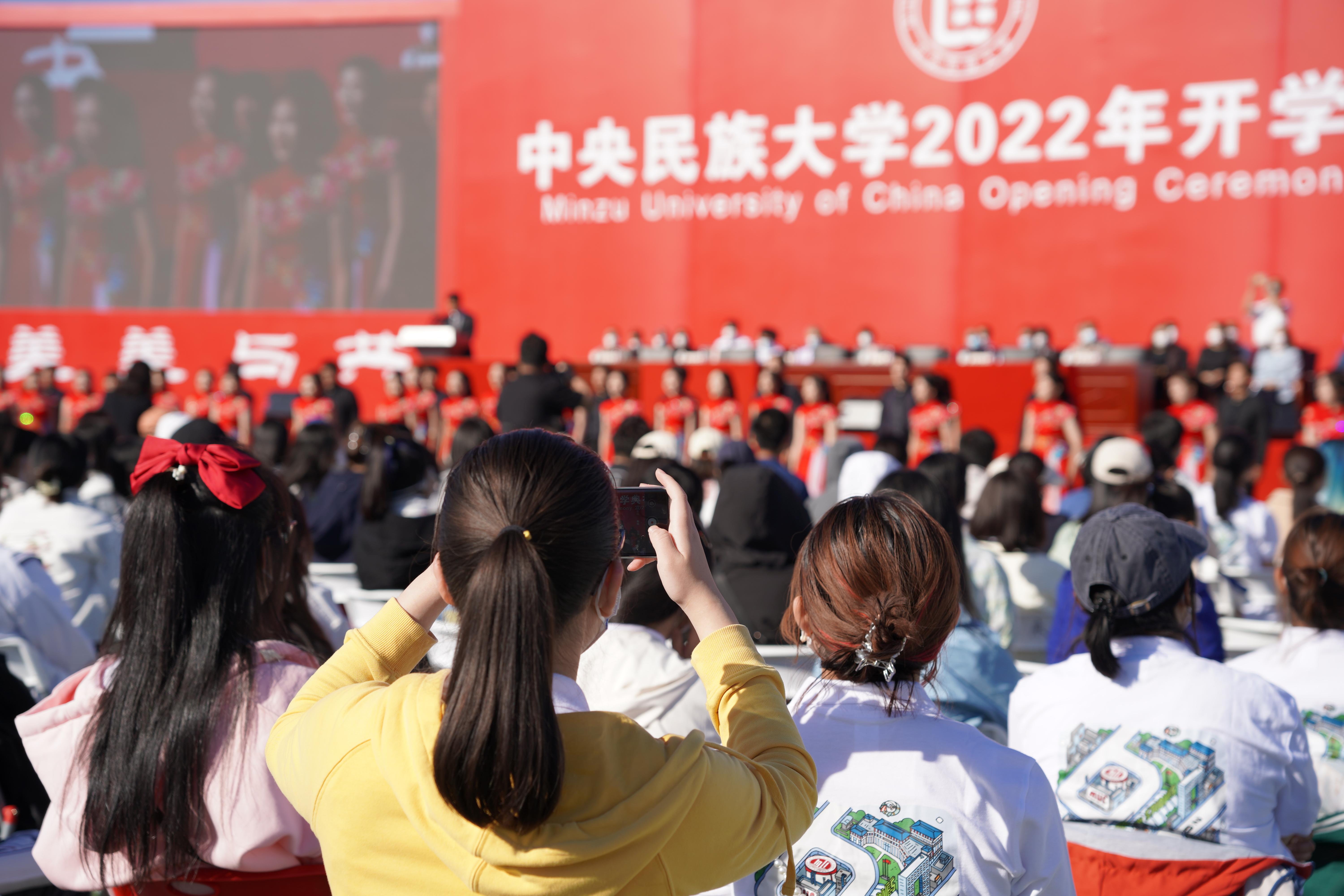 新闻网讯 秋色浩无际,风露洗晴空。9月24日,ag视讯2022年新生开学典礼在丰台校区体育场和海淀校区体育场同步举行。莘莘学子,灼灼其华。7554名各民族新生的到来,为今日民大注入了崭新生机。