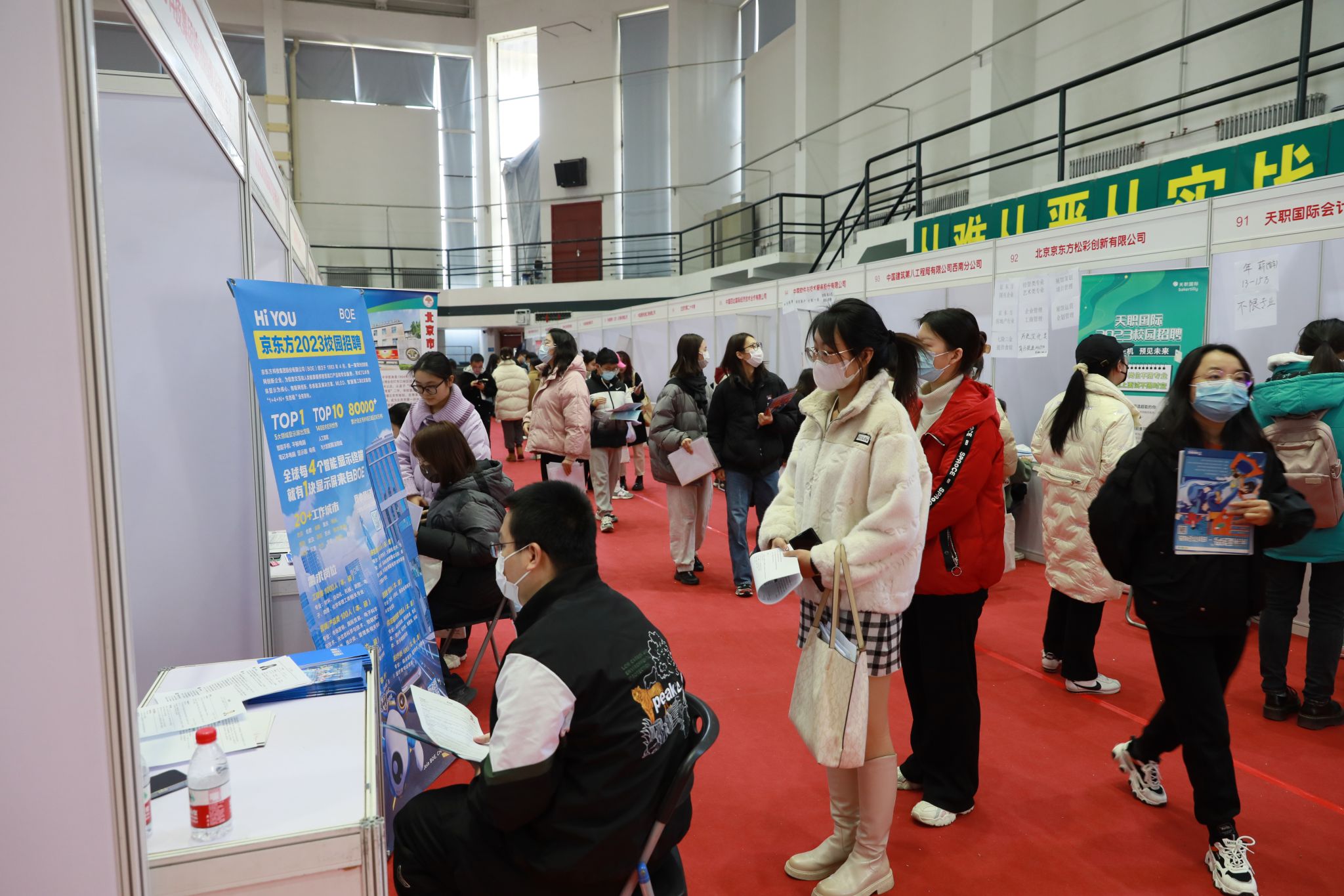 新学期伊始,民大2023年首场校园双选会于今天上午在学校逸夫体育馆举行,我校2023届毕业生纷纷到场求职。本场双选有百余家用人单位参加,覆盖教育、金融、制造、土木、租赁和商务服务、批发和零售、信息传输、软件和信息技术服务等多行业,提供工作岗位超9000个!首场线下双选会实现招聘单位和毕业生面对面、零距离的互动和对接,为双方搭建起有效的双向平台。