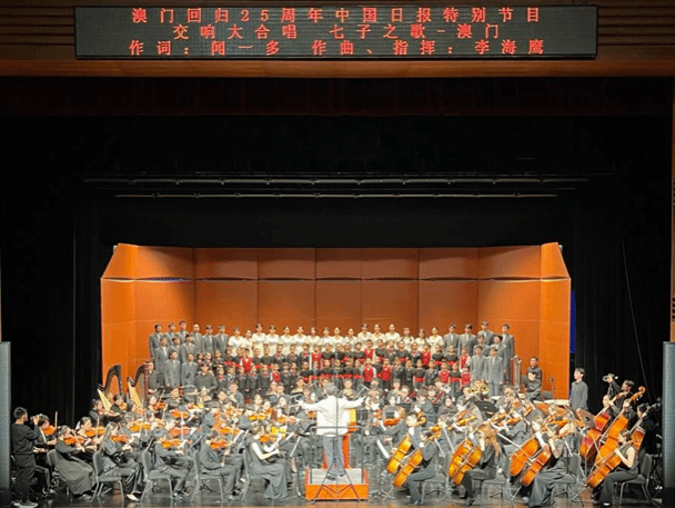 《七子之歌》以这种方式跨越时空再度奏响。壮丽的乐章连接两城,诉说血脉相连的深情;动人的歌声跨越25载,传递家国一心的永恒记忆,见证澳门的自豪与骄傲。