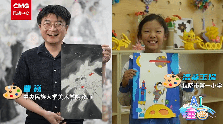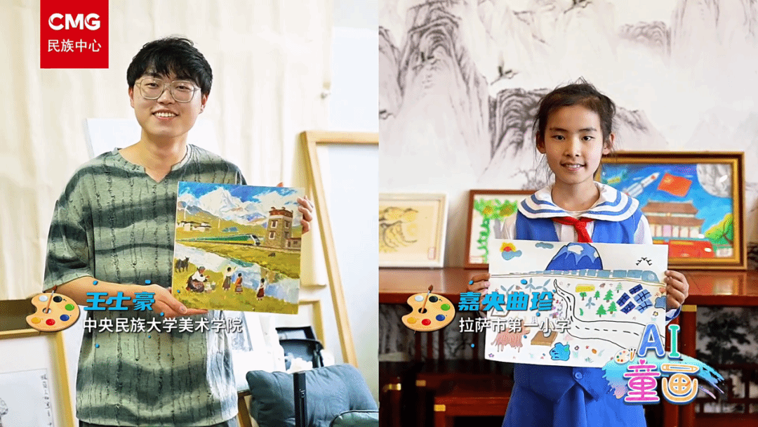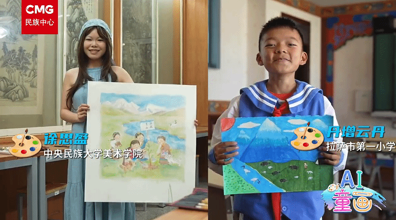 新闻网讯 8月21日,西藏自治区成立60周年庆祝大会在西藏自治区拉萨市隆重举行。当祝福乘着格桑花香飘满每一个角落,ag真人试玩的师生也用画笔蘸满星光将孩子们眼中的家园绘成跨越山海的温暖对话。快来一起看看由ag真人试玩参与中央广播电视总台民族中心举办的“AI童画:童心绘雪域”创作活动作品,共同祝福西藏明天更美好!