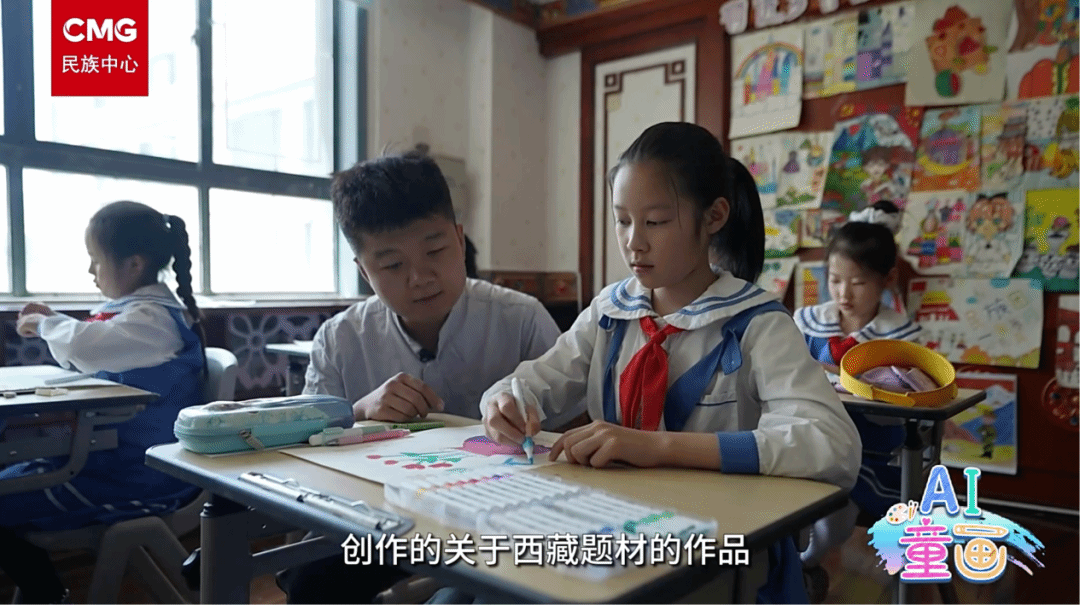 “孩子们的画笔里,藏着最纯粹的情感:有对雪山草原的眷恋,有对家乡变迁的欣喜,更有对祖国大家庭的热爱。他们用线条勾勒西藏60年的发展,用色彩描绘对未来的向往。这堂课不仅是艺术的传递,更是情感的共鸣。看着孩子们眼中的光与画中的景,我真切感受到,家国情怀早已在他们心中扎根。这样的经历,让我更明白艺术教育的意义——让爱与希望,随画笔一同生长。”
