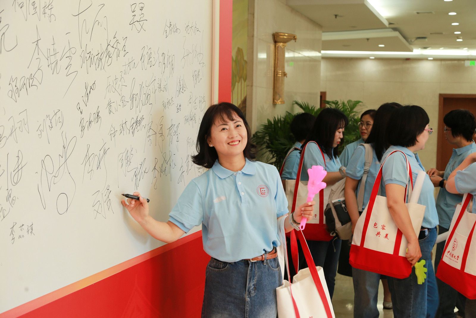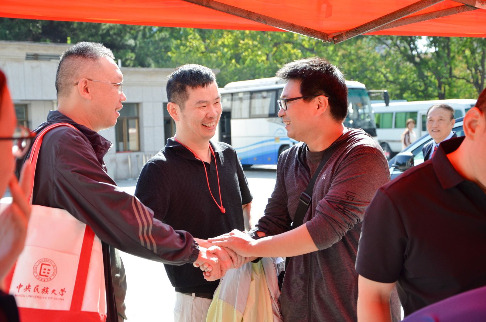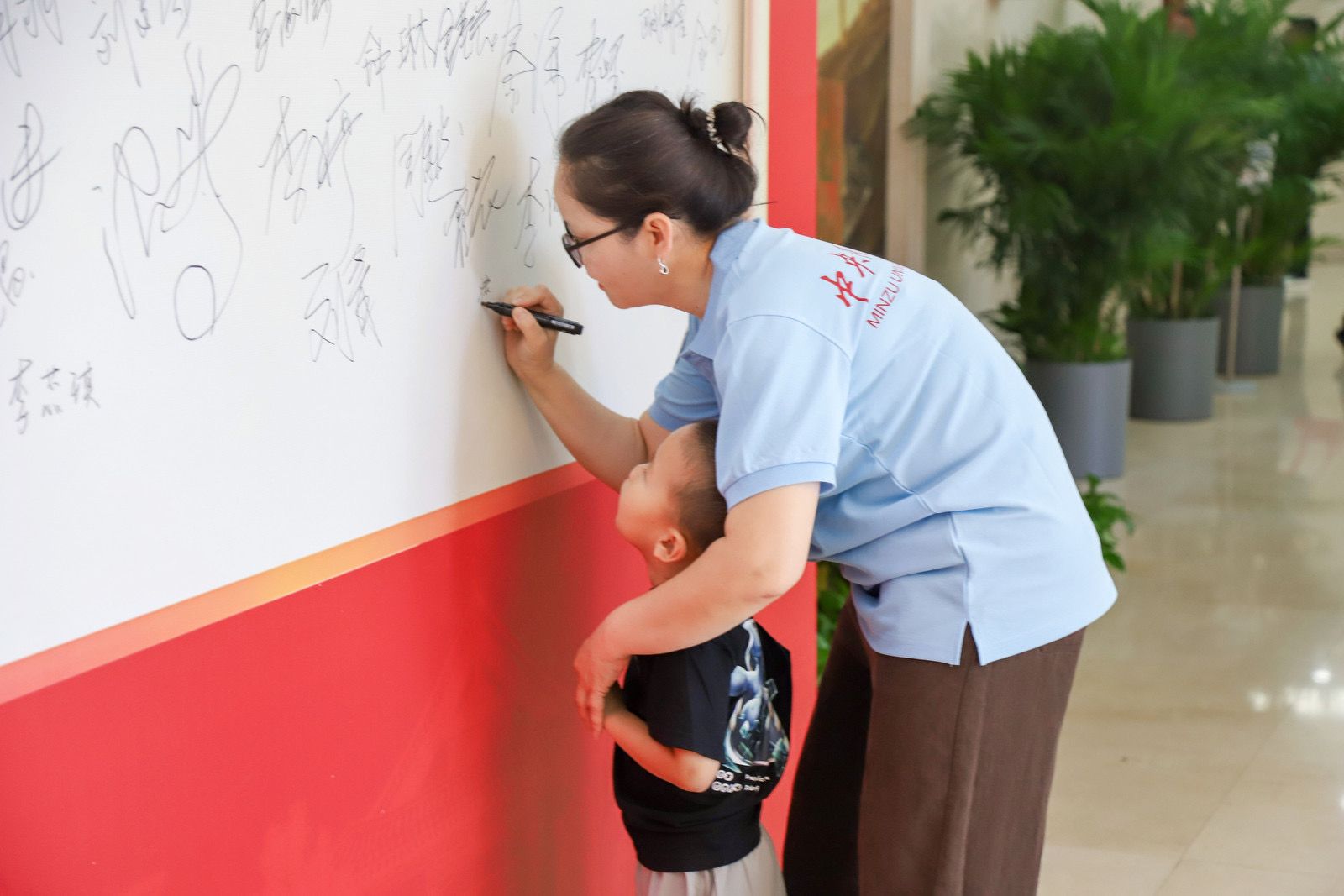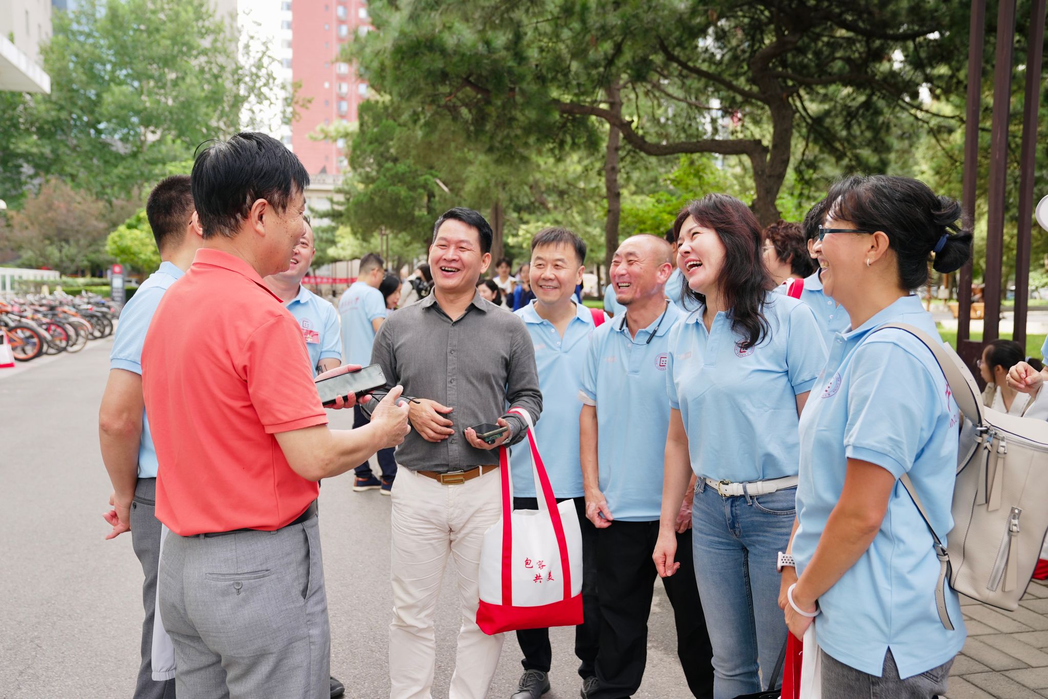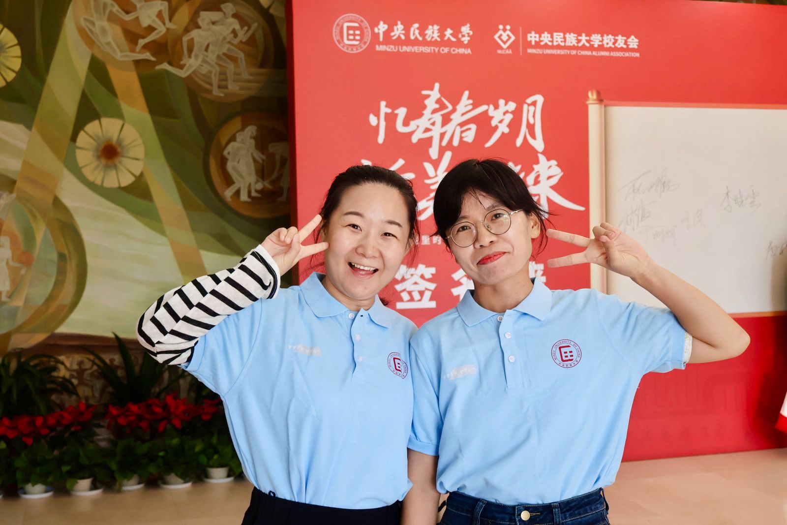 9月的民大校园,因校友们的归来而格外温馨——阔别校园已久的校友们热情相拥,在各个建筑前开心合影,每一帧都在叙说着与民大的情谊。手持校友专属文创纪念品,签名墙上打卡留下名字,这一幕仿佛回到了当年开学的光影。