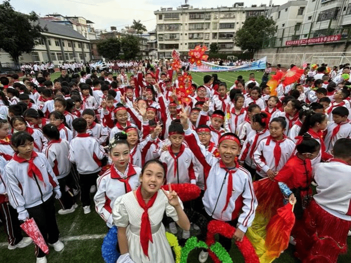 校运会入场式开始前,孩子们正激动地准备上场