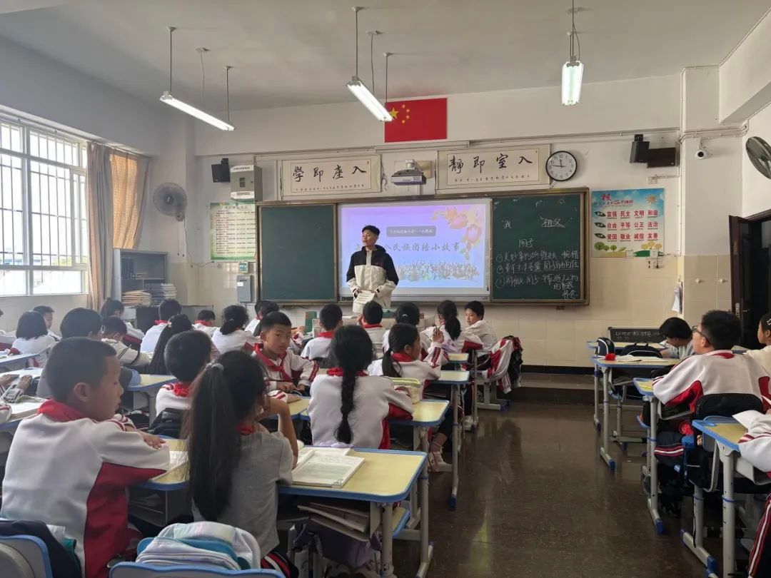 杨英杰课前为学生们讲解“民族团结小故事”