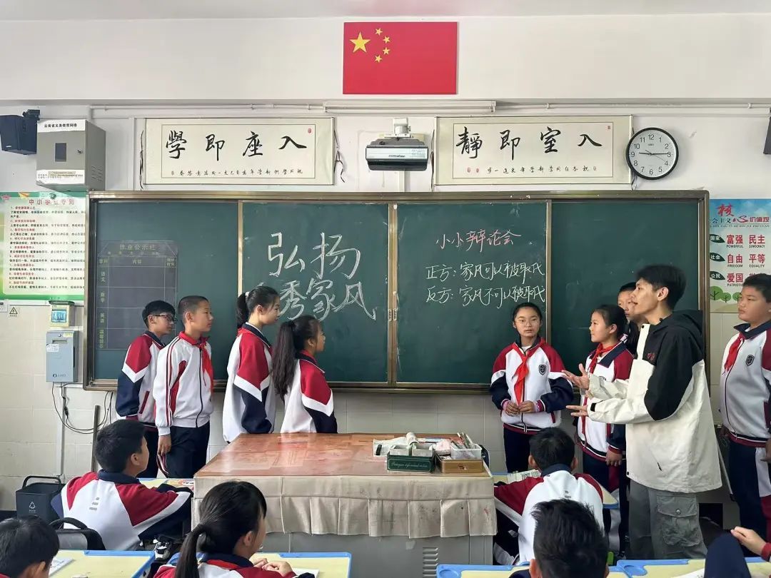 杨英杰在课堂组织开展“弘扬优秀家风”主题辩论赛